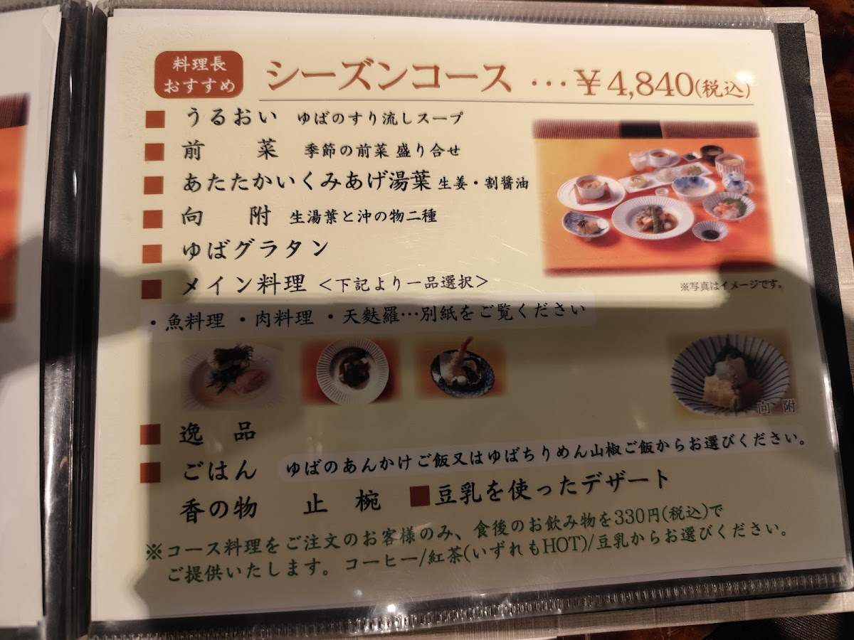 One standout option is the Seasonal Course (シーズンコース), a delightful ten-course meal recommended by the head chef. This course features three main dish options, allowing diners to choose according to their preferences. It also includes a dessert made with creamy, rich yuba (tofu skin) and homemade soy milk, promising a satisfying end to the meal.